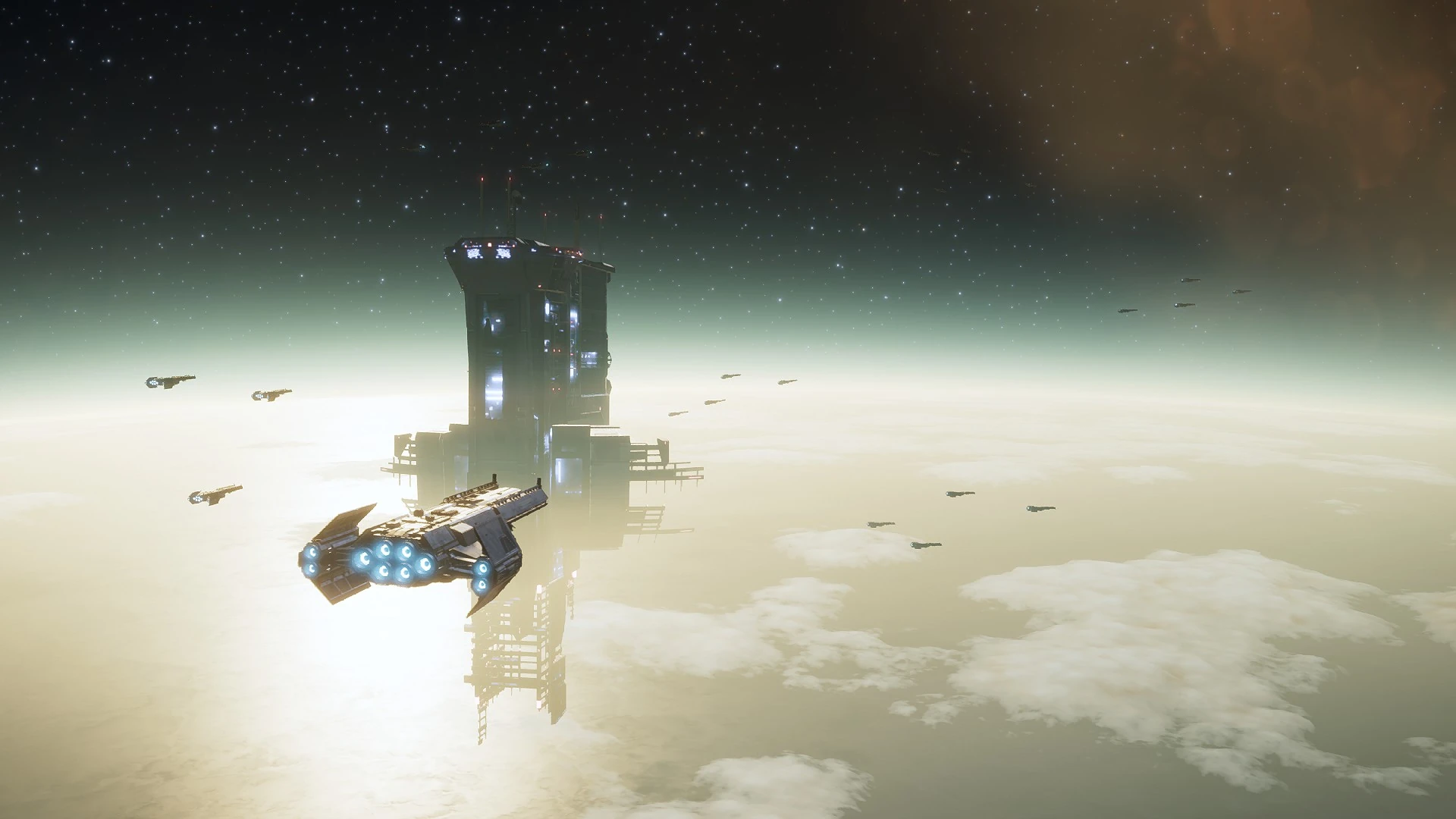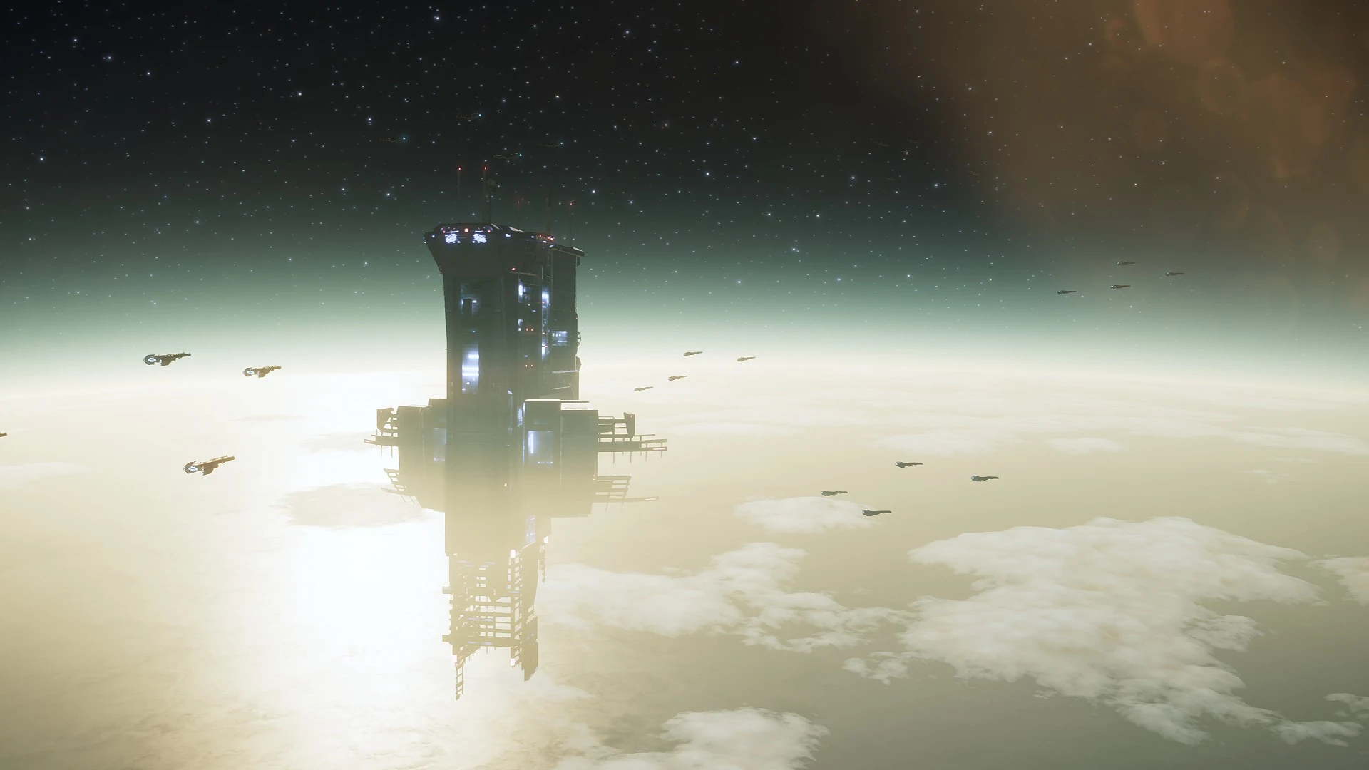 Built around the orbit of the planet Gaellivare, the Democracy Space Station is an order of magnitude larger than the standard Super Destroyer and utterly dwarfs anything else which Super Earth has put into orbit so far -- save perhaps the shipyards that orbit Mars.