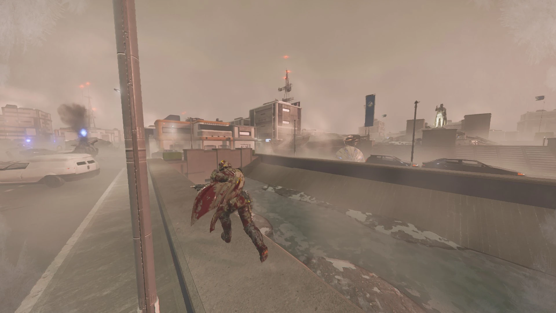 A Helldiver is forced to abandon their position in an urban colony after being destroyed by an Eagle-1 airstrike. January 8th, 2185.