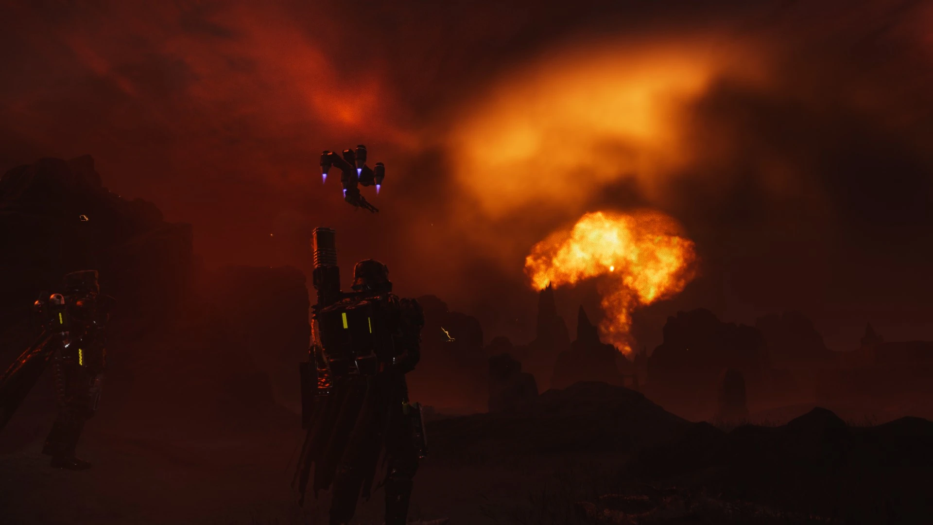 Two Helldivers look at a nuclear explosion after launching an ICBM at a target. October 22nd, 2185.