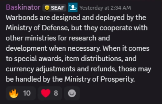 - ↑ Warbonds, Super Credits, and Superstore FAQ. HELLDIVERS™ Official Discord